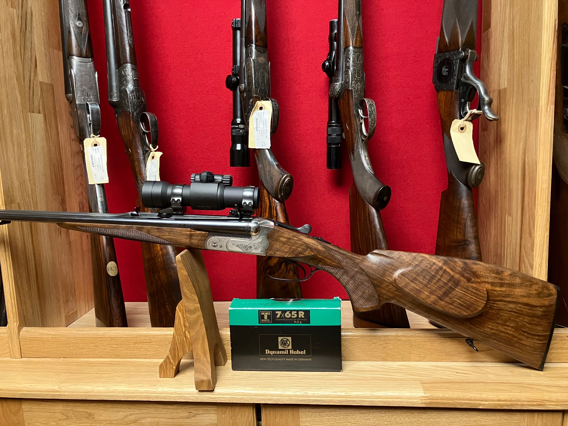 Beskrivning: Dubbelstudsare i nyskick, EAW 30 mm vrid, Aimpoint, inklusive original koffert